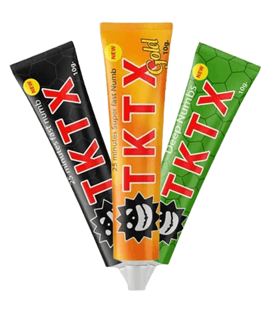 W przypadku krótszych, mniej bolesnych zabiegów, takich jak zabiegi kosmetyczne lub mniejsze tatuaże, często wybierane są TKTX żółty lub TKTX niebieski.